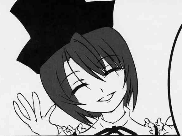 1girl ^_^ closed_eyes greyscale hat image monochrome short_hair smile solo souseiseki waving